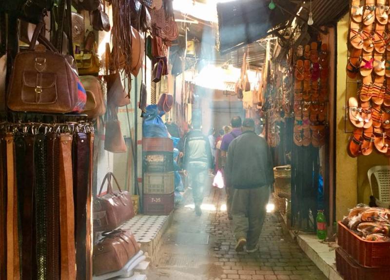 Amanecemos con un pronóstico esperanzador, las nubes se encaminaban hacia el Alto Atlas despejando un cielo beréber que predomina hasta el atardecer. Ascendemos al castillo de Borj de Ras el Ai por una estrecha carretera de arcenes mordidos y laderas inquietantes que bostezan piedras de gran tamaño. Por fin se descubre la columna vertebral del Atlas mostrando con fuerza sus cumbres nevadas, el aire bravío trae aromas de azahar y miel y lentamente, como si jugáramos a las damas, van cayendo uno a uno pueblitos de adobe y azafrán. Ni resto de la tormenta pasada, la gente sale a solearse y los jóvenes quintos danzan alrededor de una lumbre trasnochada mientras sus panderetas resuenan huecas y cansadas. Llegamos a Marrakech y el gentío se apodera de las callejuelas, los coches pitan incesantemente y cientos de motos diminutas se enredan por las calles. Un enjambre de turistas se desploma como un sol de justicia invadiendo cada esquina... siempre me deja perpleja la habilidad con la que los marroquíes te sitúan en tu país de origen sin haber dicho palabra... ¿española de dónde eres? De Granada... y responden... Ohhhh somos hermanos! y se van... y desaparecen en un laberinto de calles trucadas tematizadas por oficios: las pieles decoran las paredes de bolsos y babuchas de colores imposibles que desprenden un olor intenso y peculiar, los herreros que crean a golpe de martillo y fuego grandes cerrojos labrados y lámparas de sol... el barro untuoso que toma forma en las manos de madera reseca de jóvenes viejos con miradas vacías... me llama la atención la zona de confección decorada por vestidos de novia primorosamente bordados con hilos de oro y sedas color pastel que reposan en maniquíes de redondeadas formas y bustos prominentes... me genera ternura el abuelo que hace ricos zumos de naranjas sanguinas en el momento o el repostero que ofrece exquisitos dulces de almendra, pistachos y miel recién sacados de horno... Nos perdemos en ese laberinto de sentidos esquivando carros y tentaciones, el aire se espesa y empieza a atardecer... los colores melosos del cielo recortan la figura vigía de la Koutoubia... la noche cae de golpe y la plaza Jemaa El Fna se crece entre decenas de puestos de manjares variados que abren o cierran el apetito al pasar: “le apetece unos caracoles picantes?... una lengua de vaca ternica o unos sesos de cordero? unos calamares fritos y unas platijas? Siéntese, mi puesto es el mejor... todo fresco y más barato que en Carrefour”... los muchachos sonríen con esas risas francas y te dicen... si no puedes hoy. venir mañana... mañana queda tanto camino por andar...