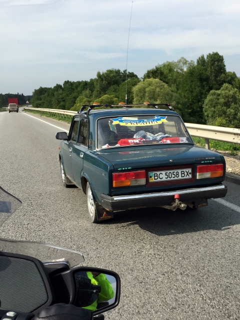Nada más cruzar la frontera nos dimos cuenta de que estábamos "en otra época". Los vehículos de las fotos eran los más habituales hasta llegar a Kiev.